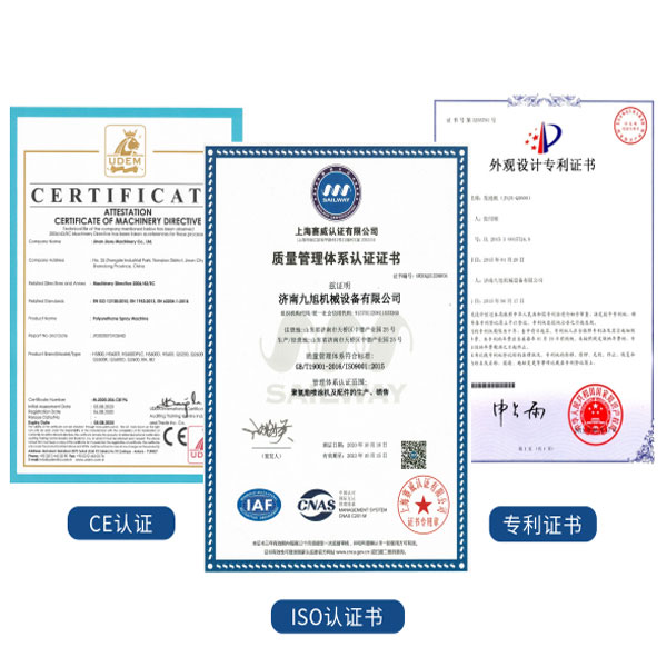 山东九旭机械科技有限公司历经十几年的发展,已成长为聚氨酯设备行业颇具实力的设备制造业之一。企业主要产品:聚氨酯高压喷涂机、聚氨酯发泡机、聚氨酯喷涂机、聚脲设备、聚氨酯发泡设备、聚氨酯发泡机等关于设备配件(聚氨酯高压喷枪、枪嘴、加热管道、料块、摩擦副、增压泵、混合式、提料泵等)也是坚持最好的质量服务用户,并承接:外墙保温、冷库保温发泡等工程。山东九旭机械科技有限公司已通过ISO9001:2015质量管理体系认证和国家高新技术企业认证,目前山东九旭机械设备已领跑中国聚氨酯设备行业,成为广大客户之首选。